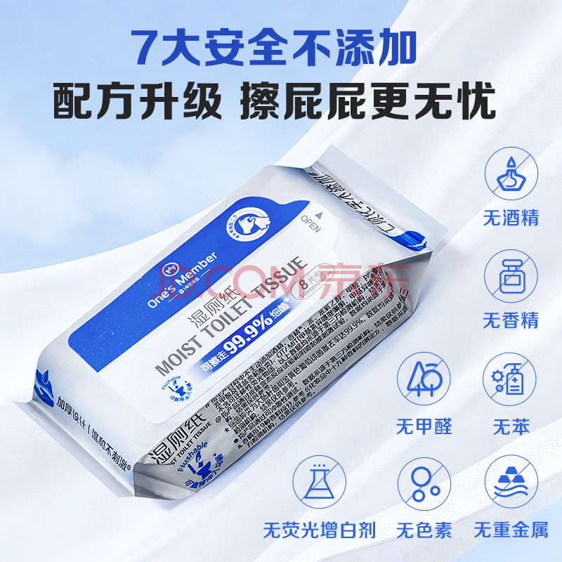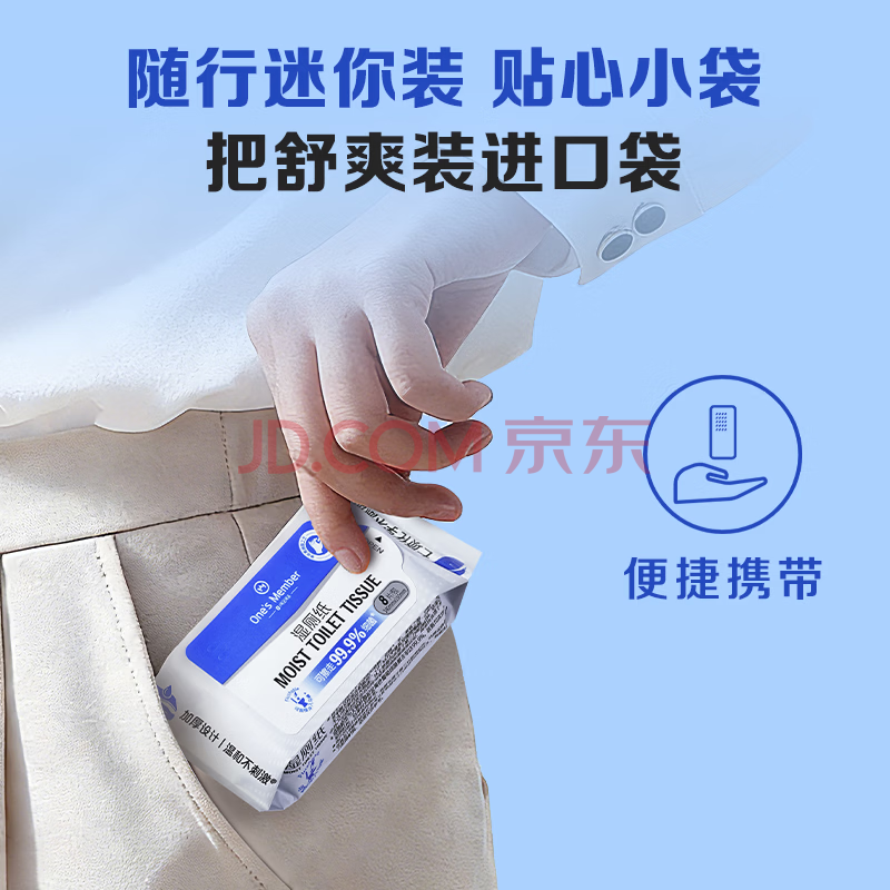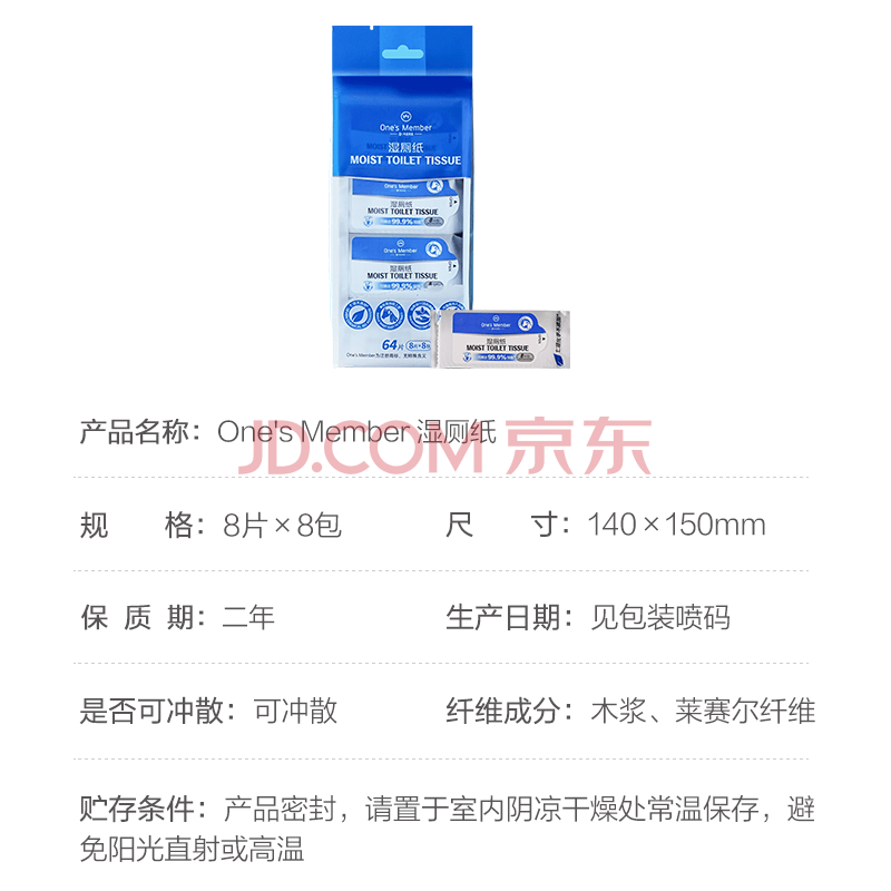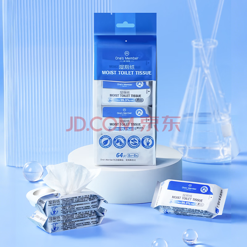 商品相册:1号会员店(One's Member) 湿厕纸8片*8包 7大不添加易抽取可擦除99.9%细菌便携迷你小包装第