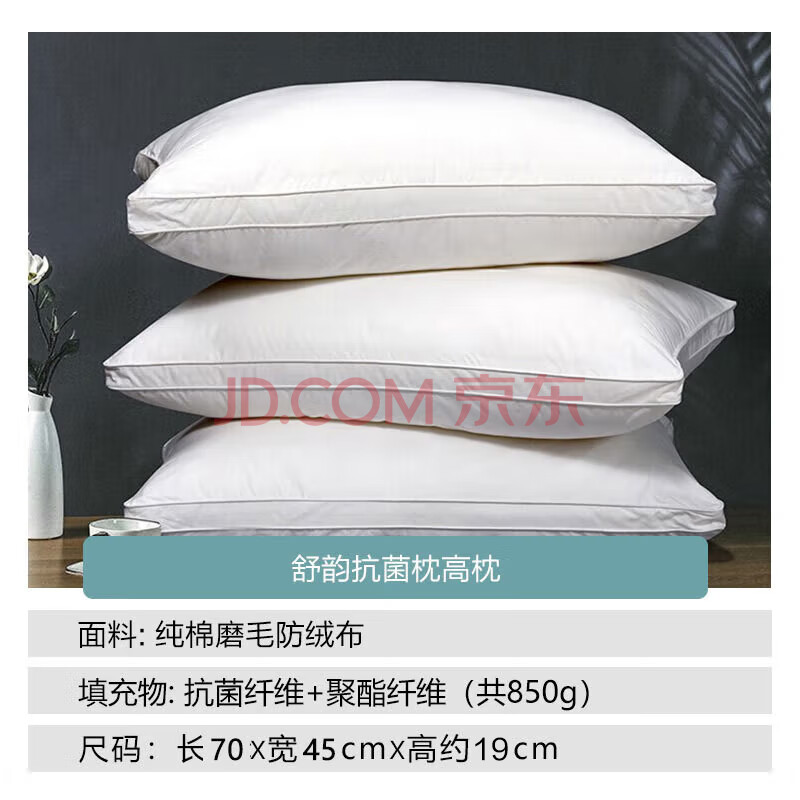商品相册:富安娜家纺枕芯纯棉面料抗菌枕头芯成人软枕酒店枕纤维枕高枕70*45cm第