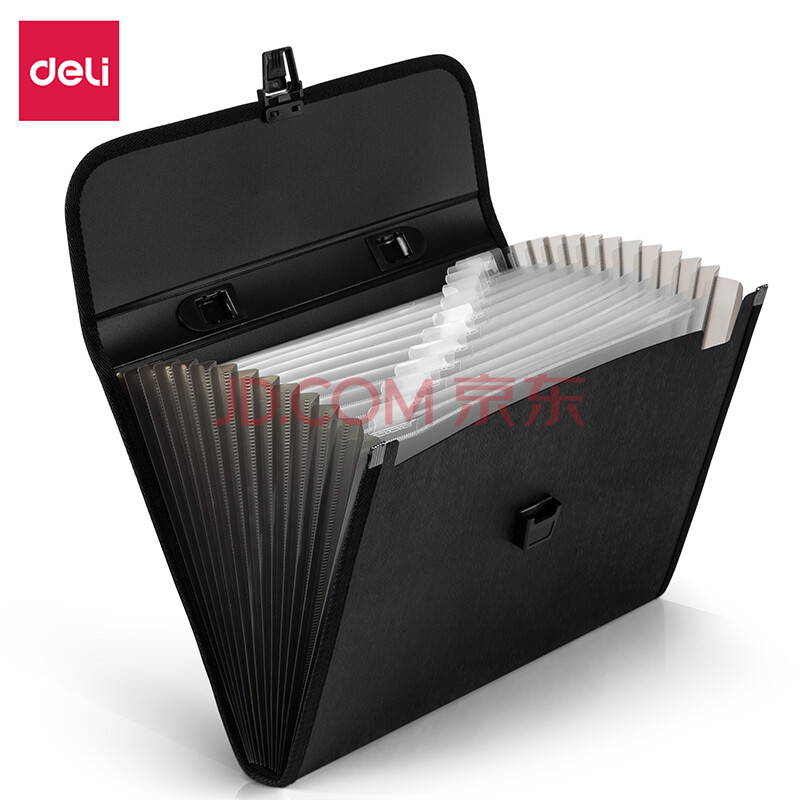 商品相册:得力(deli)5232风琴包(黑)3个13格A4手提文件包/文件夹/资料夹 多层时尚手提会议事务包第
