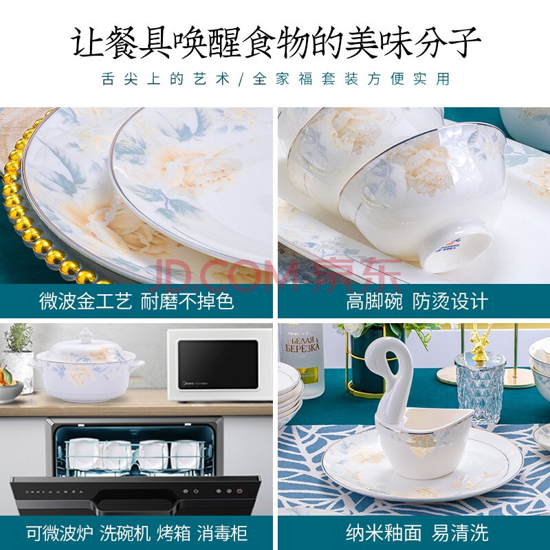 商品相册:冠朴2025新款碗碟套装家用景德镇骨瓷餐具轻奢欧式简约骨瓷碗盘套装第