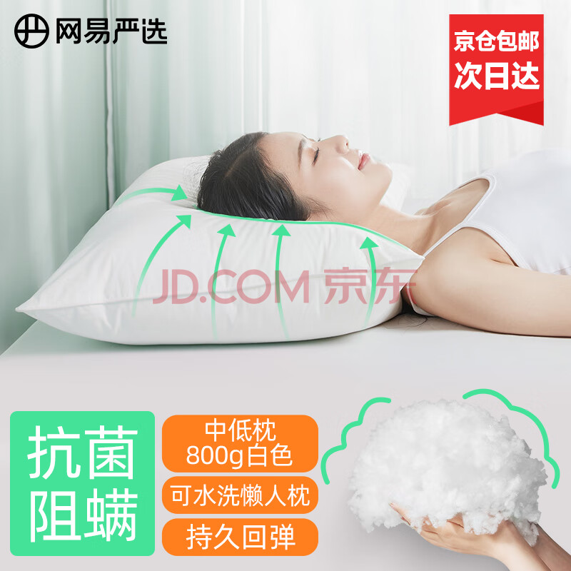 商品相册:网易严选可水洗懒人枕酒店枕头 A类全枕可机洗 48*74cm常规款750g牛奶白第
