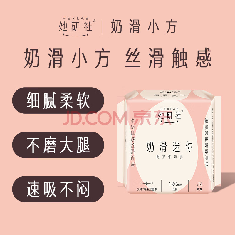 商品相册:她研社奶滑小方绵柔迷你卫生巾日用护垫190mm14片姨妈巾京东自营第