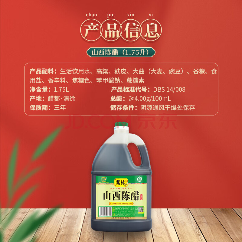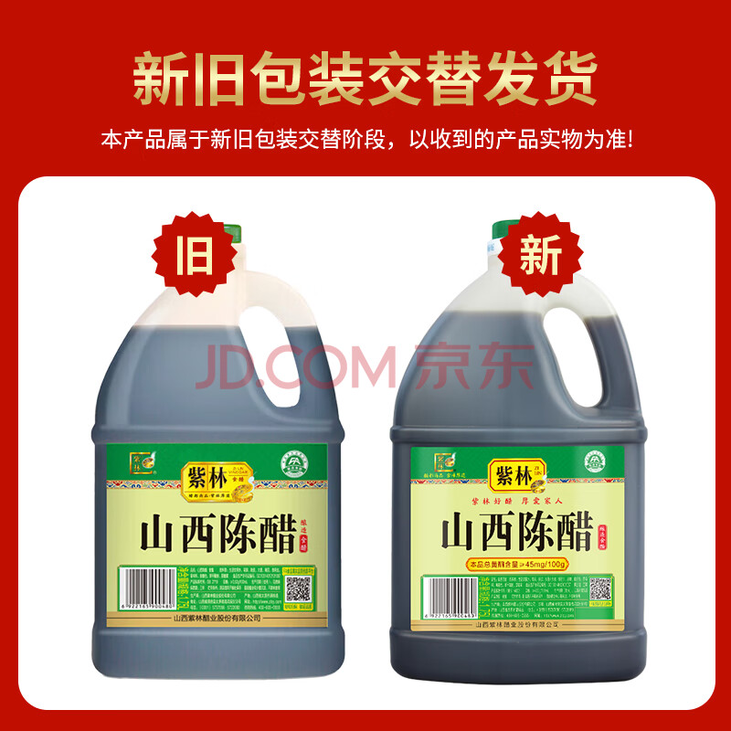 商品相册:紫林山西陈醋4度酸1.75L大容量调味品纯粮酿造食醋山西特产饺子家用醋第