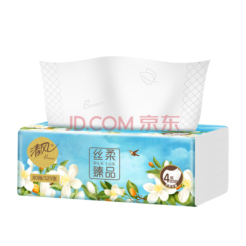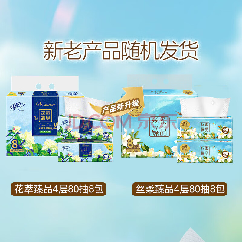 商品相册:清风【李昀锐同款】抽纸 丝柔4层80抽*8包S码 卫生纸巾 新老包装交替第