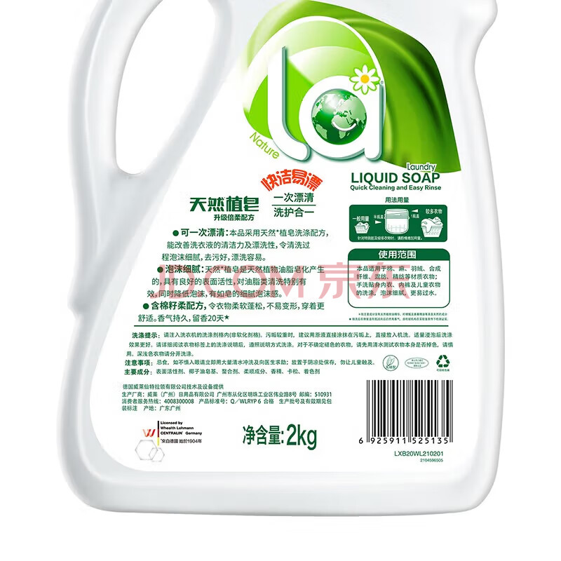 商品相册:妈妈壹选天然植皂护色2kg*2瓶 皂液洗衣液 机洗手洗 低泡易漂第
