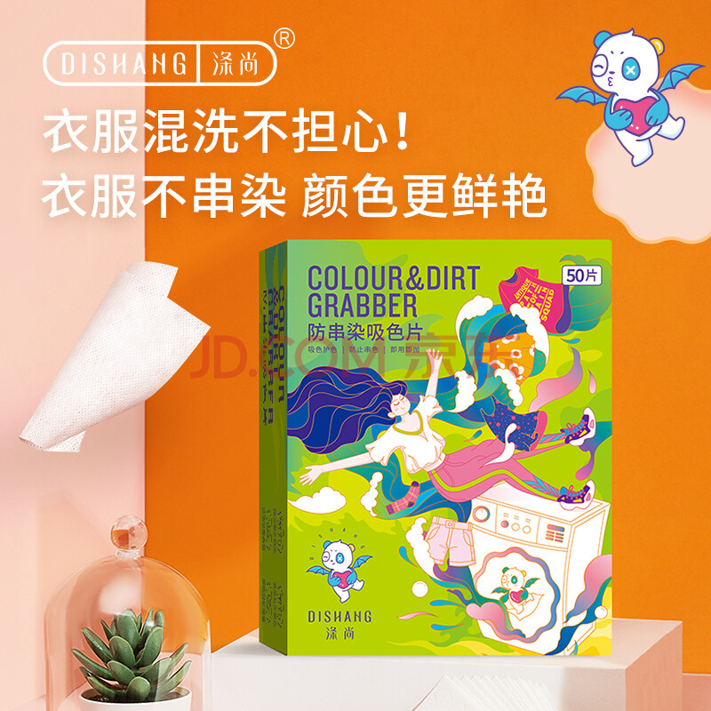 商品相册:涤尚(DISHANG)防串染吸色片(大容量50片/盒)洗衣防串染色母片防染巾混洗无忧第1张/共8