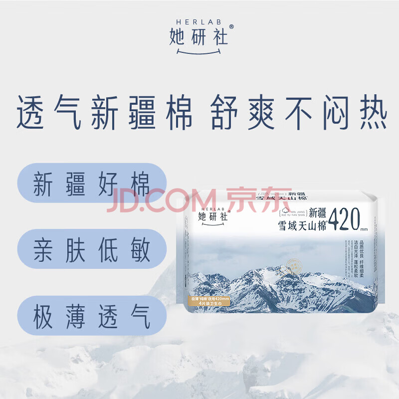 商品相册:她研社新疆棉卫生巾超长夜用组合420mm16片 超薄安睡纯棉姨妈巾京东自营第