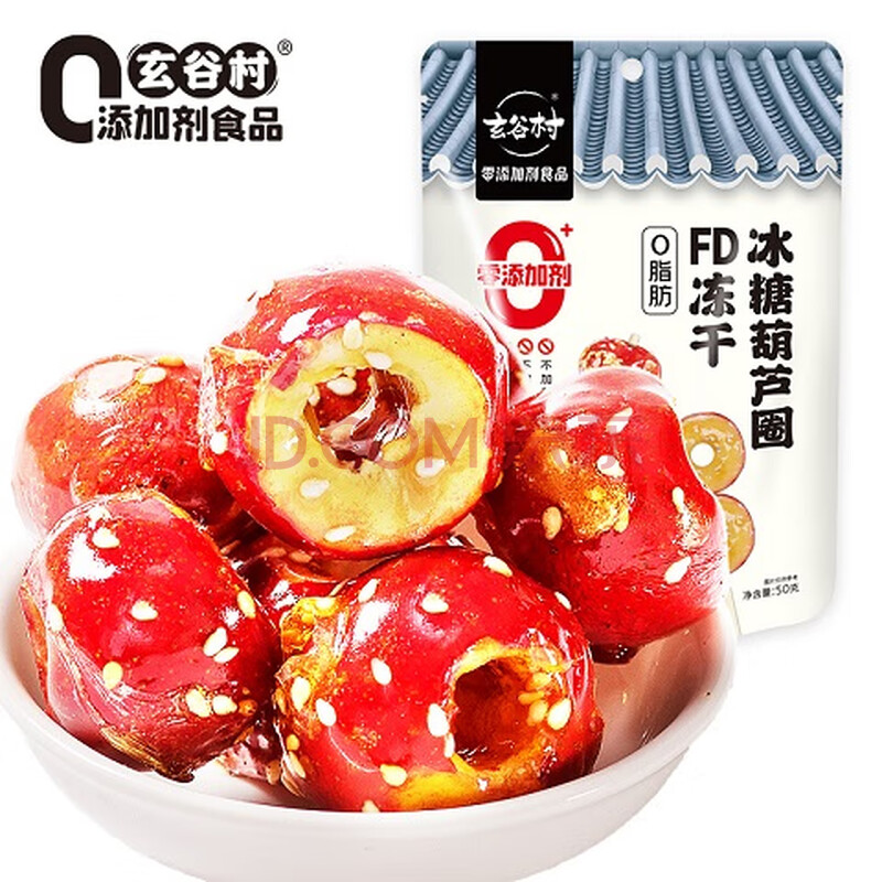 商品相册:玄谷村冻干冰糖葫芦圈50g 0添加剂老北京冰糖葫芦山楂球办公室休闲零食第