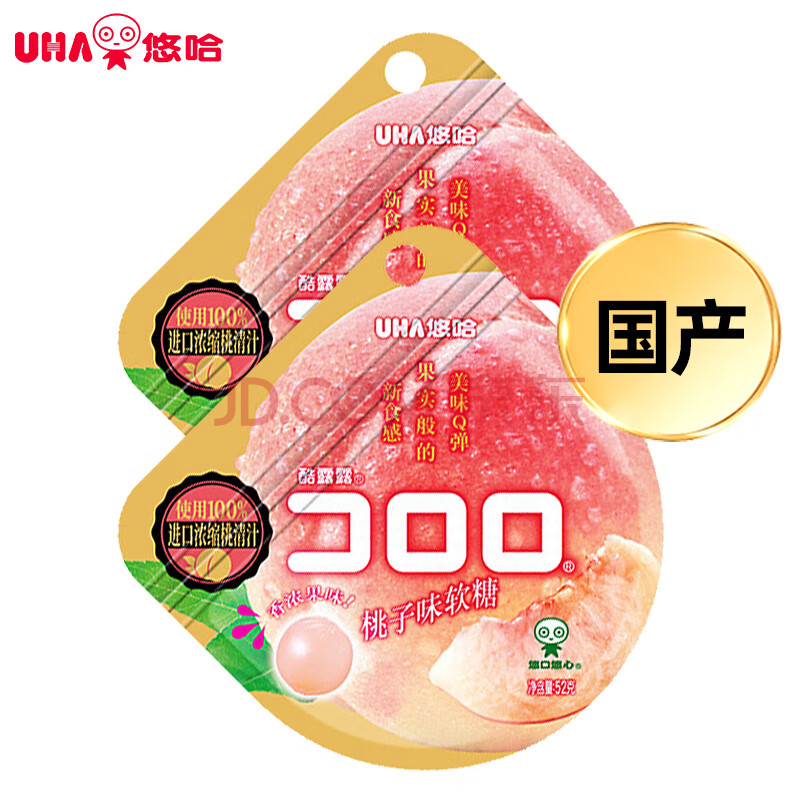 商品相册:悠哈 酷露露果汁软糖 52g*2包 桃子味 休闲零食糖果 爆浆软糖qq糖 第