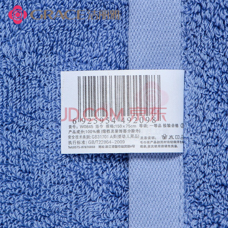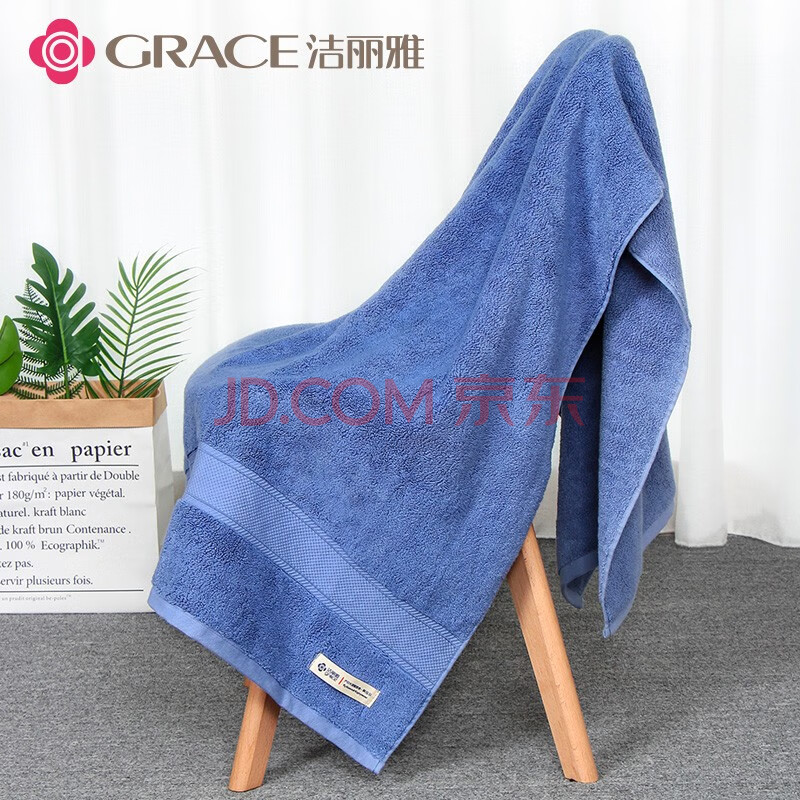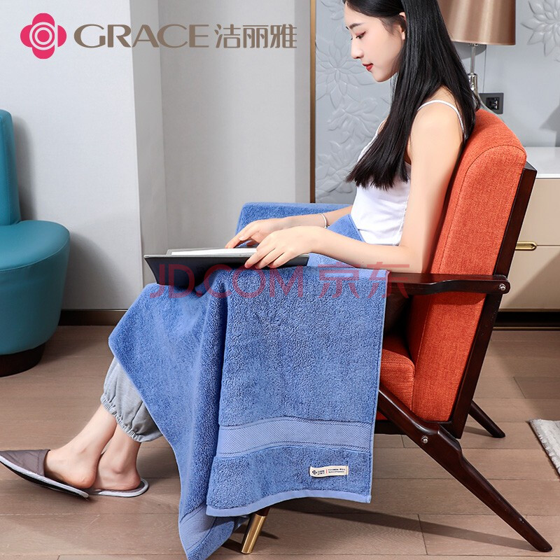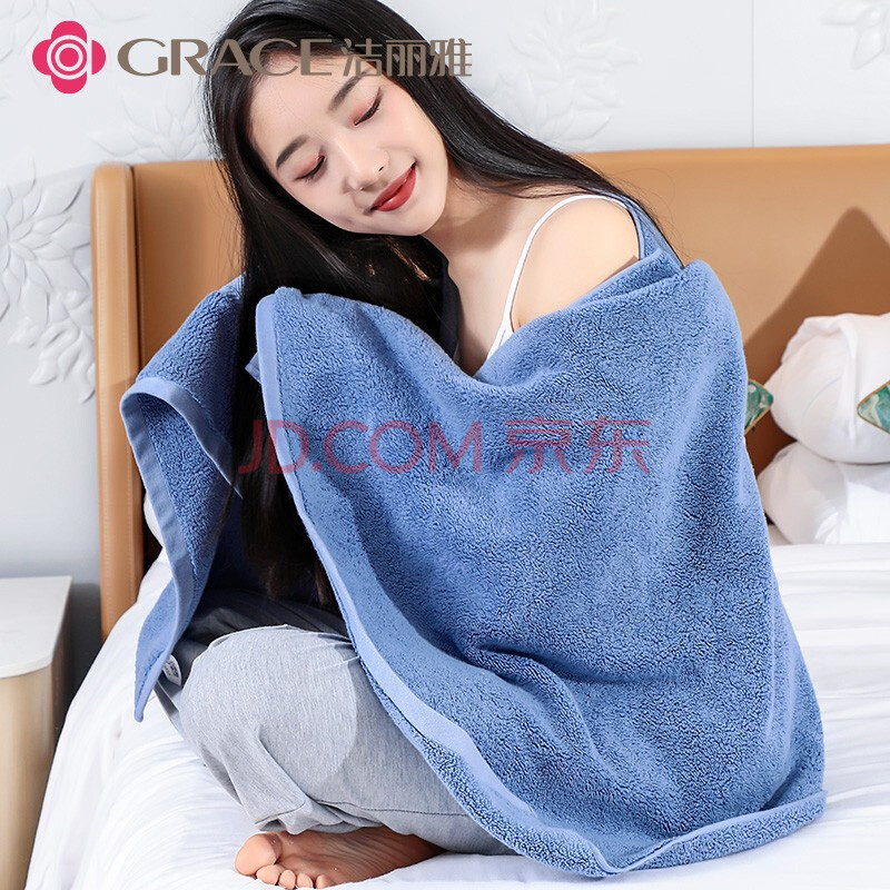 商品相册:洁丽雅(Grace)A类纯棉浴巾 男女士加大加厚洗澡大毛巾新疆长绒棉裹巾蓝色650g第