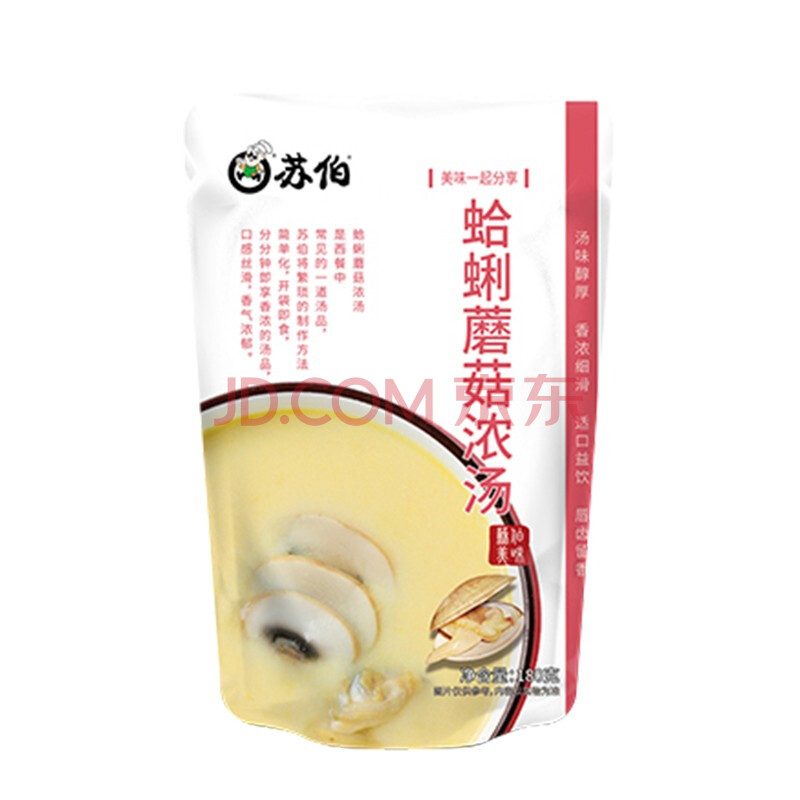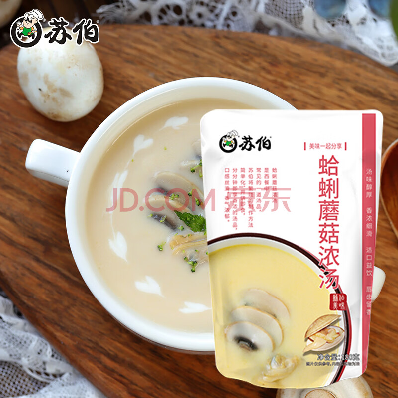 商品相册:苏伯法式浓汤蛤蜊蘑菇浓汤180g*2袋装 芝士西餐便携早餐代餐汤第