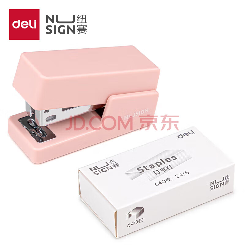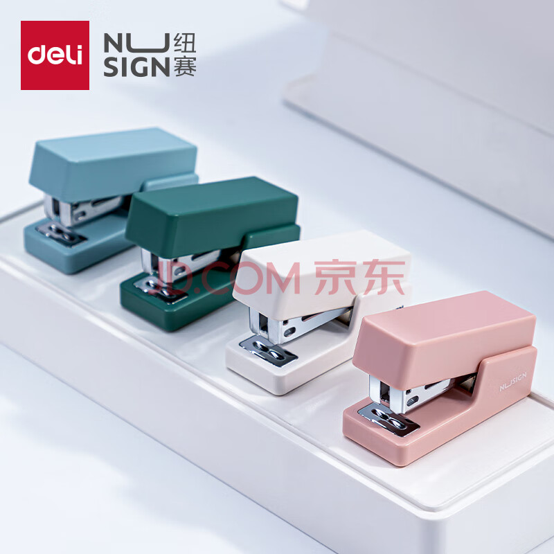 商品相册:得力迷你订书机小号 学生办公轻巧便携手握式省力订书装订器赠830枚钉 办公用品粉色NS083第