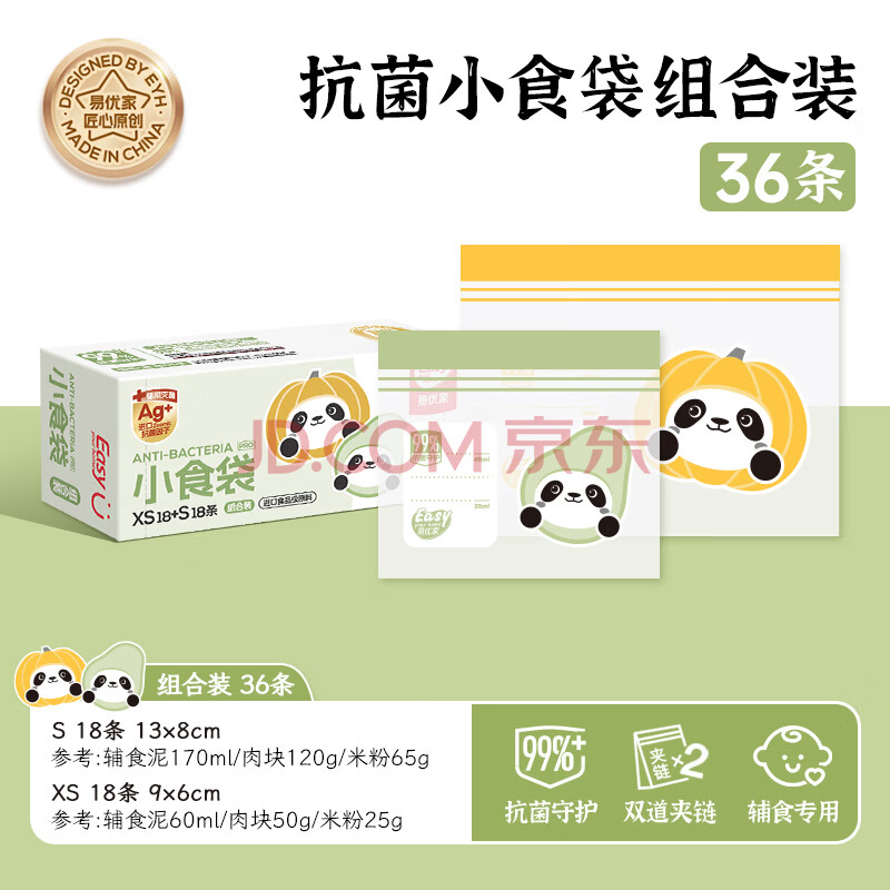 商品相册:易优家婴儿抗菌辅食袋宝宝食品密封袋保鲜袋加厚维生素海参分装袋36只第