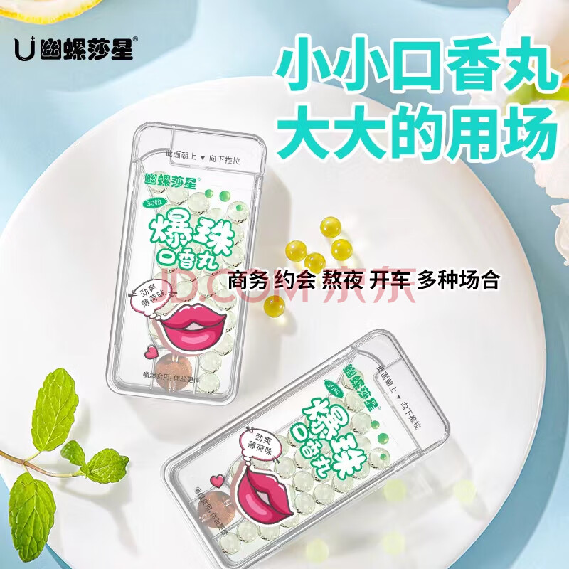 商品相册:幽螺莎星爆珠丸 爆珠糖口香丸糖口气清新薄荷糖网红接吻糖组合装2盒60粒3g第