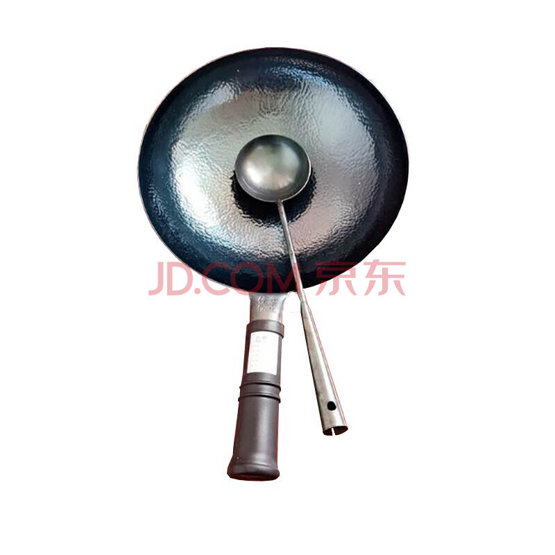 商品相册:鲁凤来. 章丘老式铁锅纯手工打造带盖32CM 锻打勺子木盖三件套FLTG-1208第