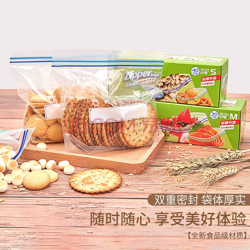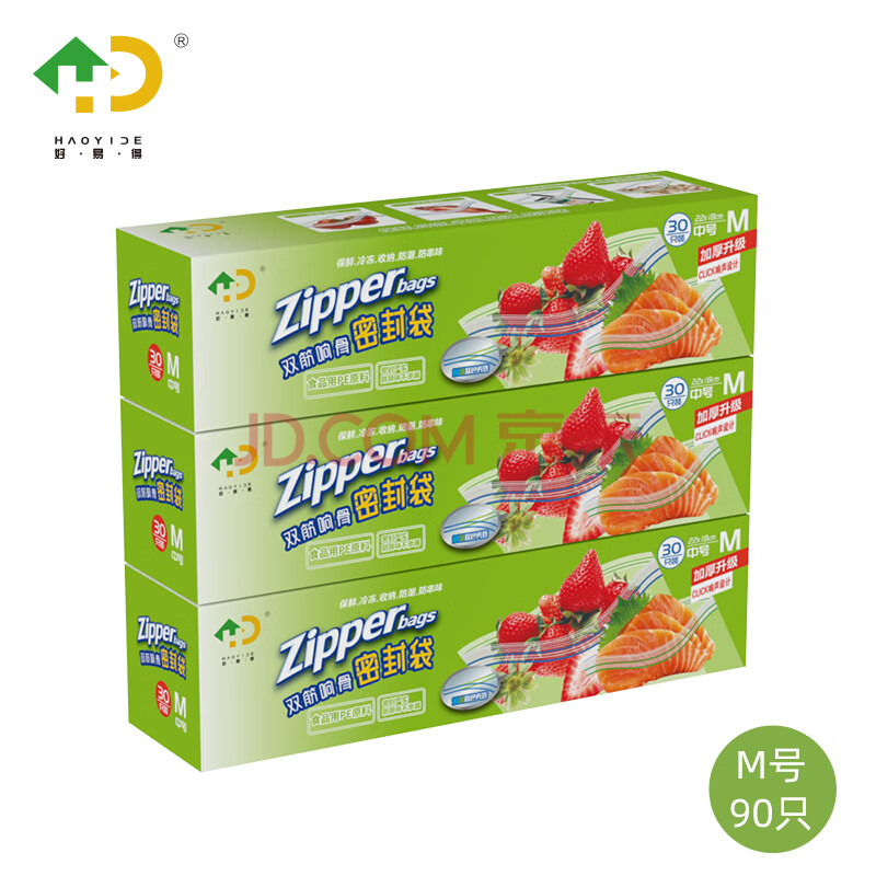 商品相册:好易得 双密封条食品密封袋宝宝辅食分装保鲜袋中号三盒共90只第