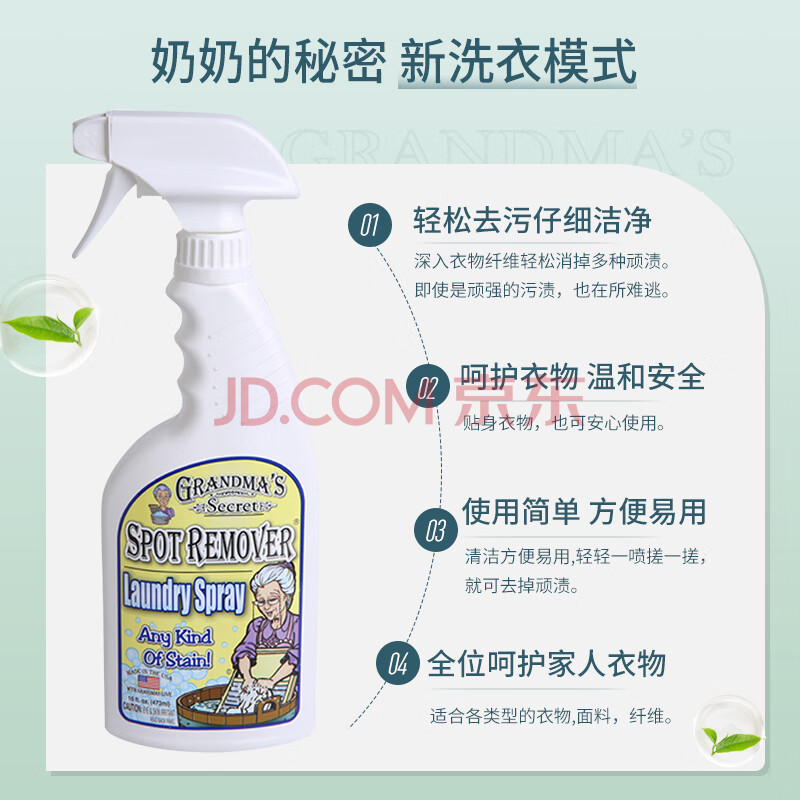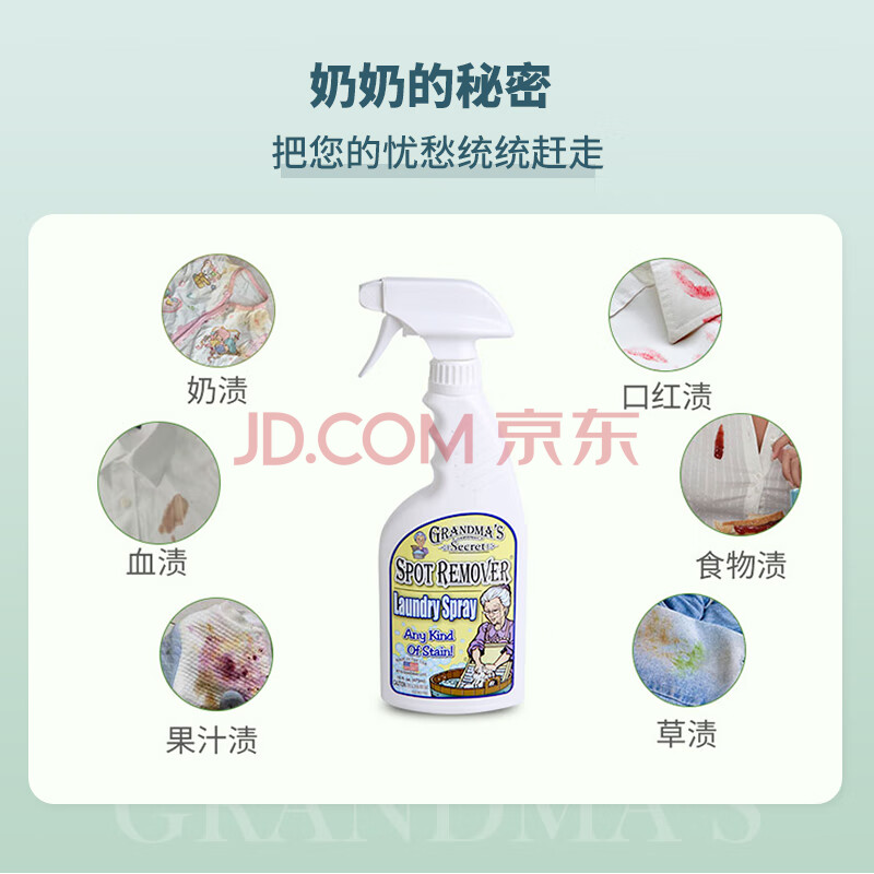 商品相册:奶奶的秘密去渍笔去渍剂+衣物去渍液预洗喷雾 去油污渍神器白衣领净美国进口第1张/共7