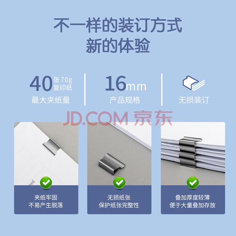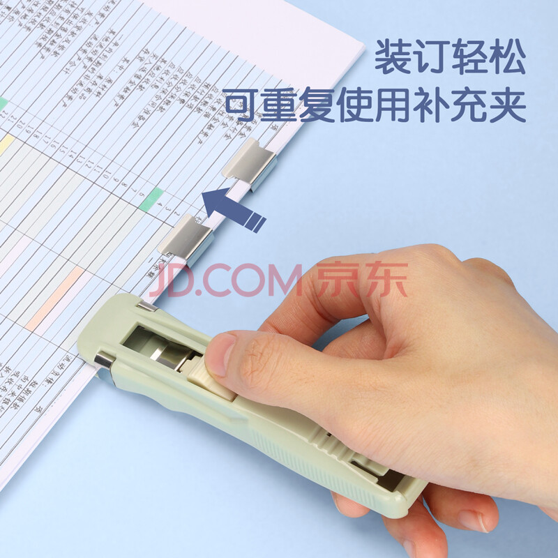 商品相册:得力(deli)装订推夹器 学生办公便携装订新型票夹文件夹子 可夹纸张数40张 绿 8591F第
