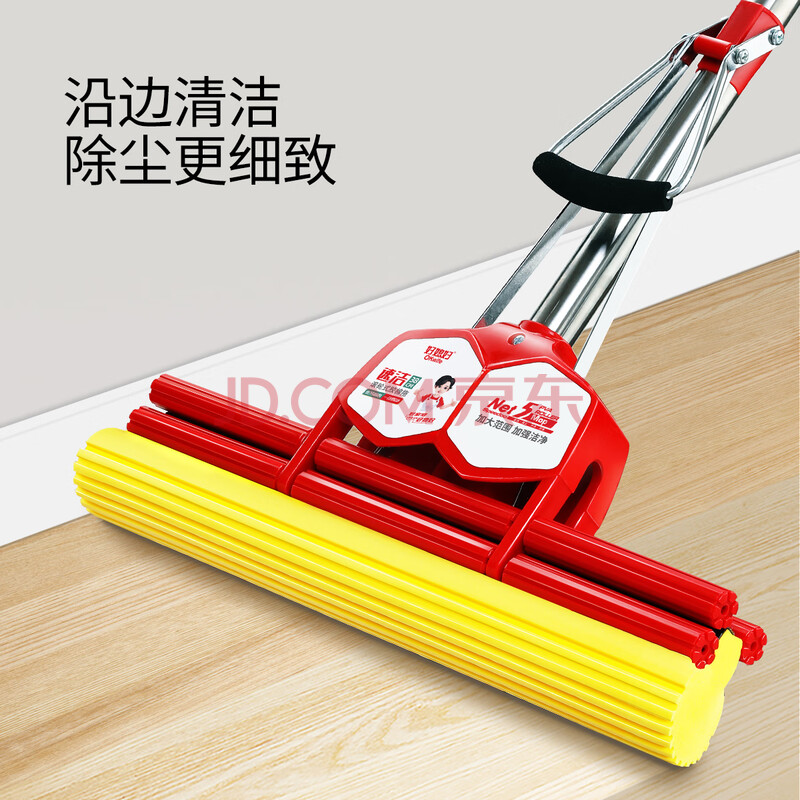 商品相册:好媳妇胶棉拖把38cm1个头 不锈钢双排滚轮免手洗海绵拖把家用挤水神器第