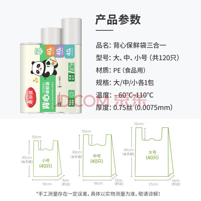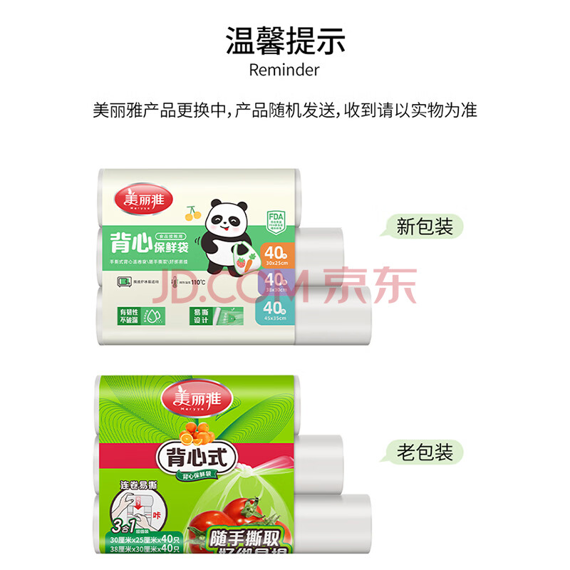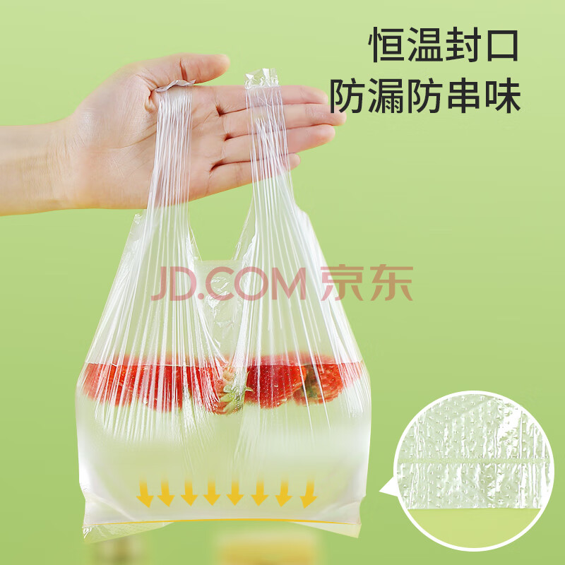 商品相册:美丽雅一次性连卷式背心保鲜袋食品级 三合一120只 加厚耐用食物分装袋第