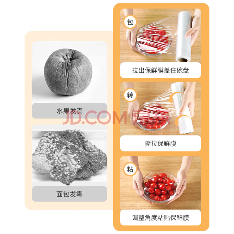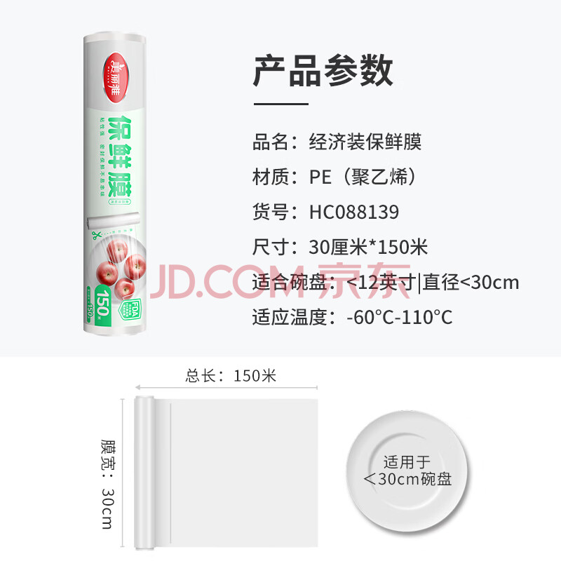 商品相册:美丽雅一次性保鲜膜大号经济装30cm*150米 食品级家庭用PE材质安全卫生第