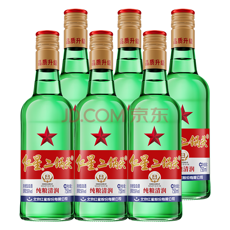 商品相册:红星二锅头 大二 清香型白酒 56度 750ml*6瓶 整箱装 纯粮口粮酒第