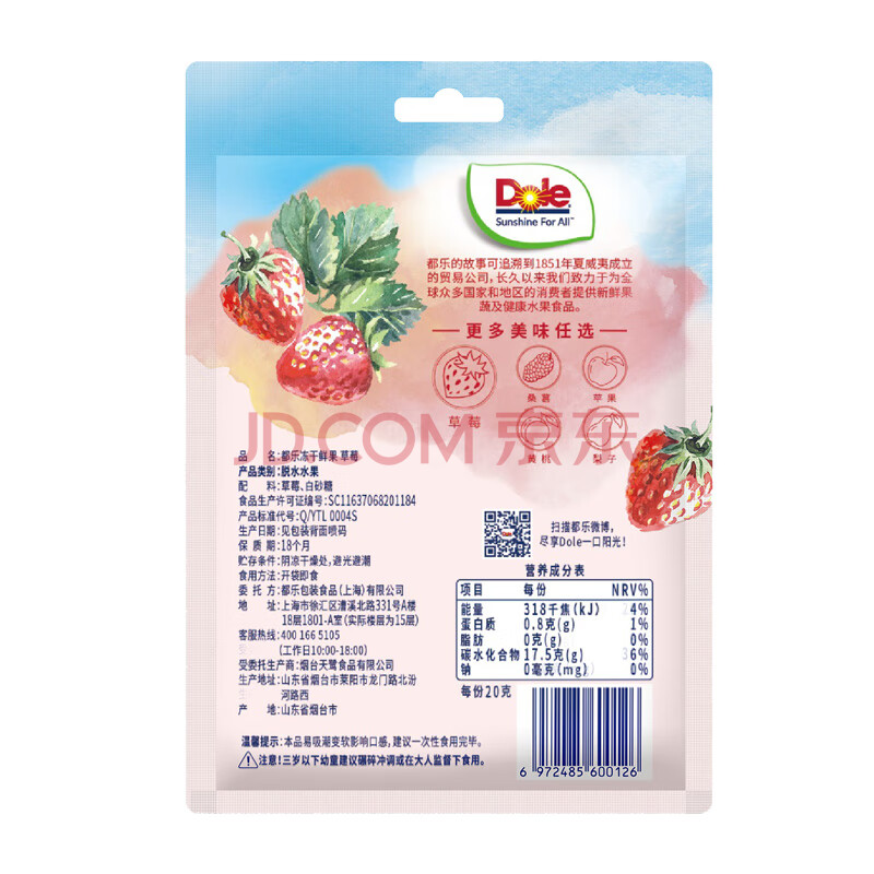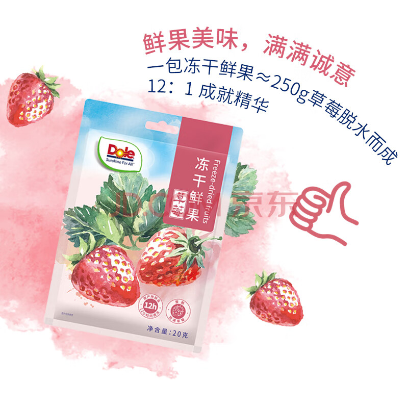商品相册:都乐(DOLE)冻干鲜果草莓20g 整颗草莓 烘焙蜜饯果干果脯 儿童休闲零食小吃第