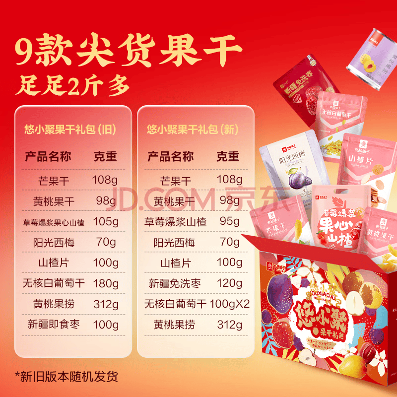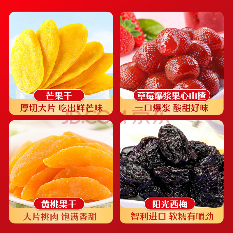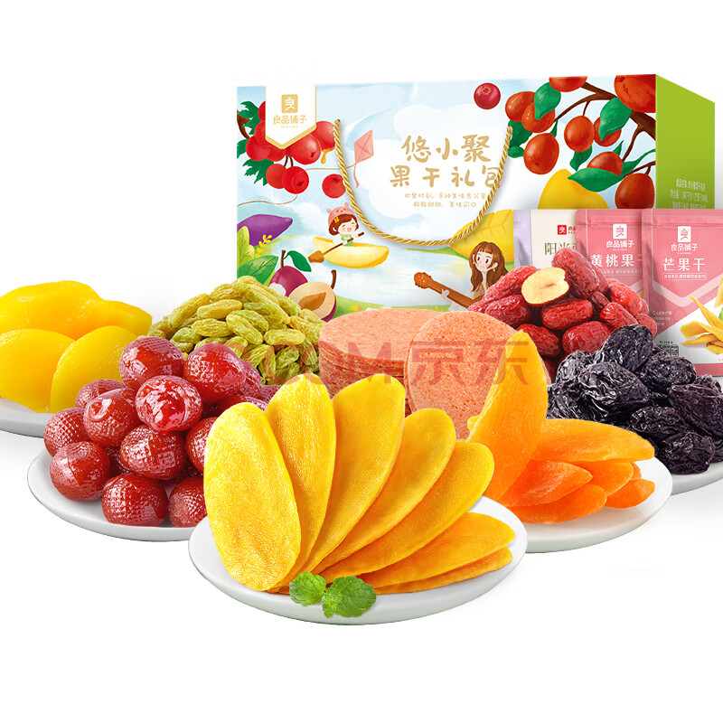 商品相册:良品铺子悠小聚果干零食大礼包1103g芒果干西梅葡萄干山楂红枣9种年货礼盒第