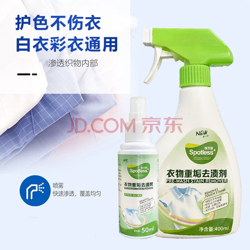 商品相册:净万家 衣物重垢剂去渍剂 50ml*3瓶装 喷雾去渍剂 血渍 汗渍 油渍清洗剂第