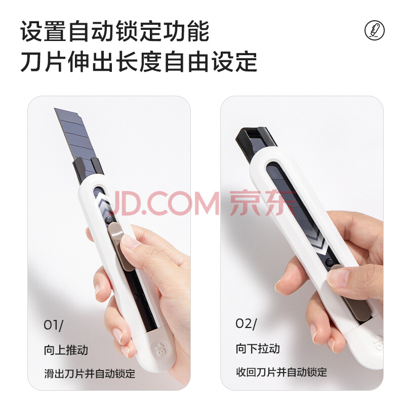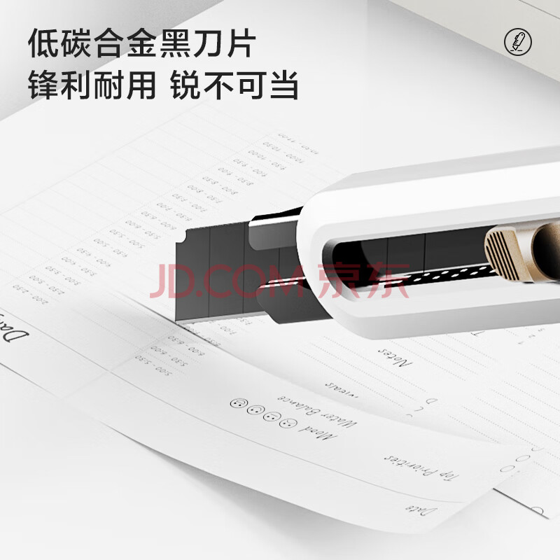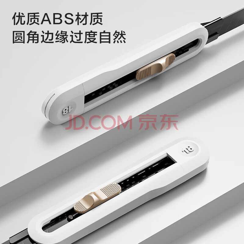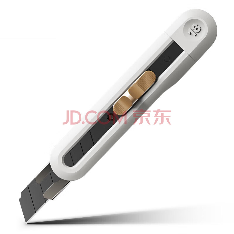 商品相册:得力(deli)大号撞色设计美工刀壁纸刀裁纸刀 办公用品 尾部自带折刀器 汉玉白 NS062第