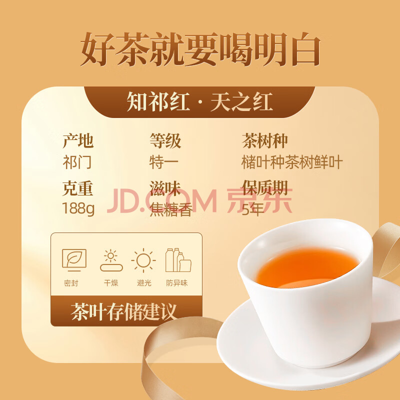 商品相册:天之红红茶祁红高香英雄茶特一级罐装188g第