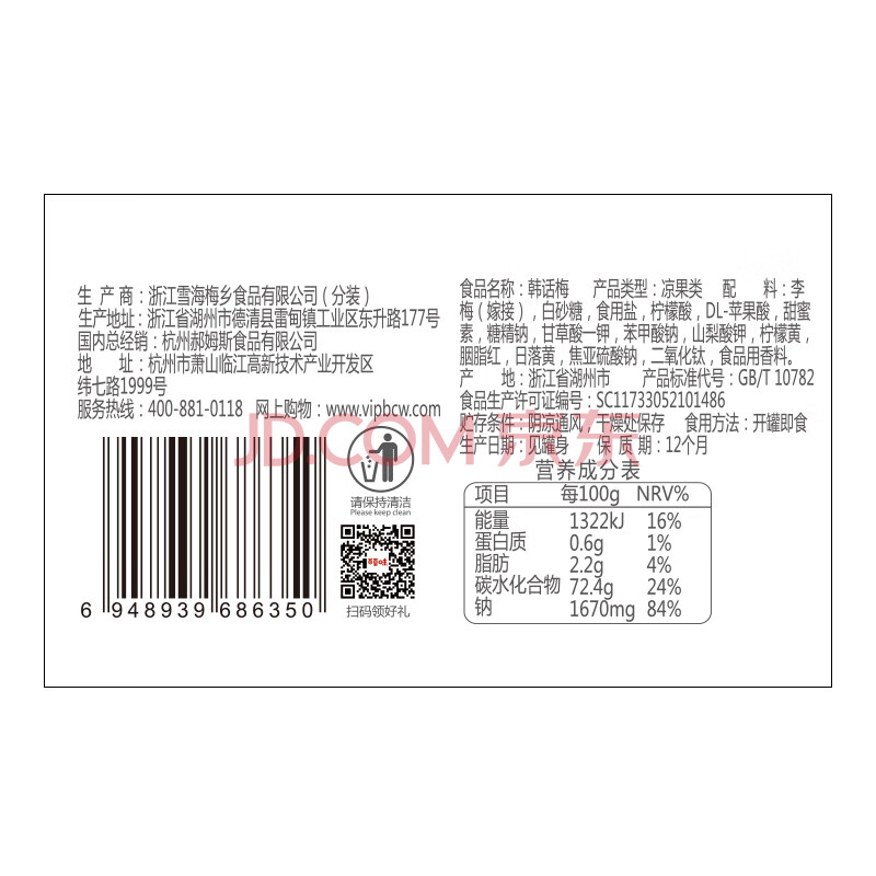 商品相册:百草味 韩话梅闲了梅168g 清甜九制蜜饯果干梅子办公室零食第1张/共7