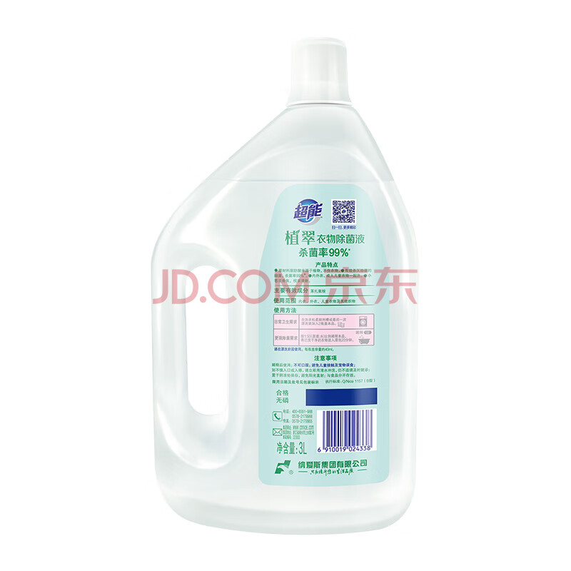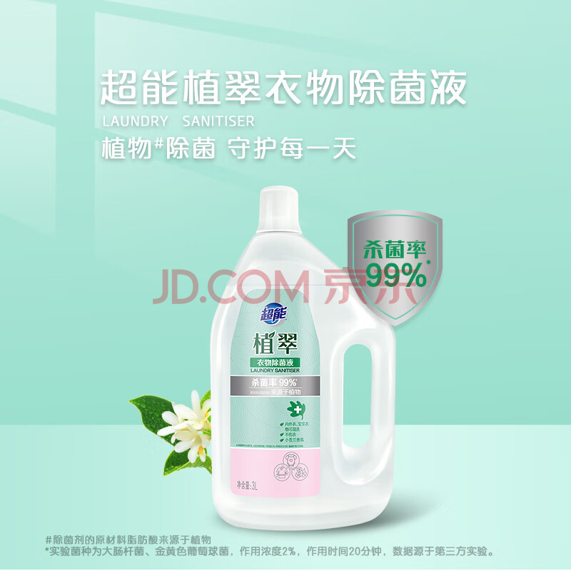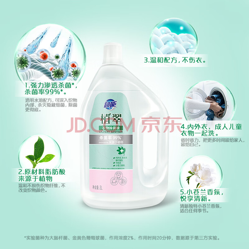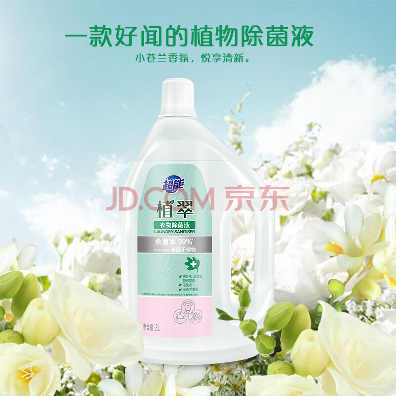 商品相册:超能 衣物除菌液 3L 小苍兰香 杀菌率99% 母婴可用 温和不伤衣第
