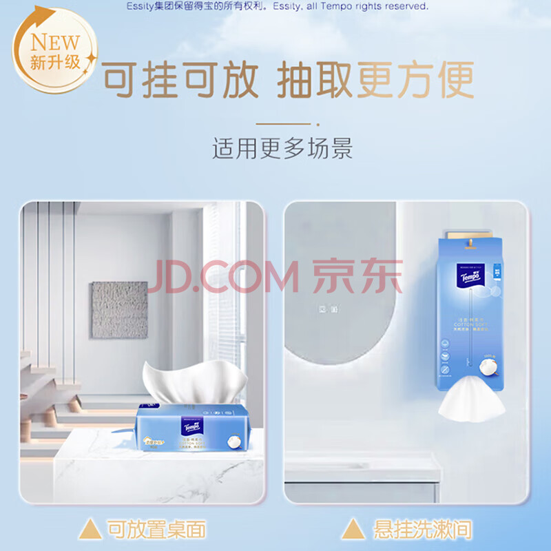 商品相册:得宝Tempo得宝一次性洗脸巾90抽6包棉柔巾干湿两用纯棉洗脸巾擦脸纸巾第