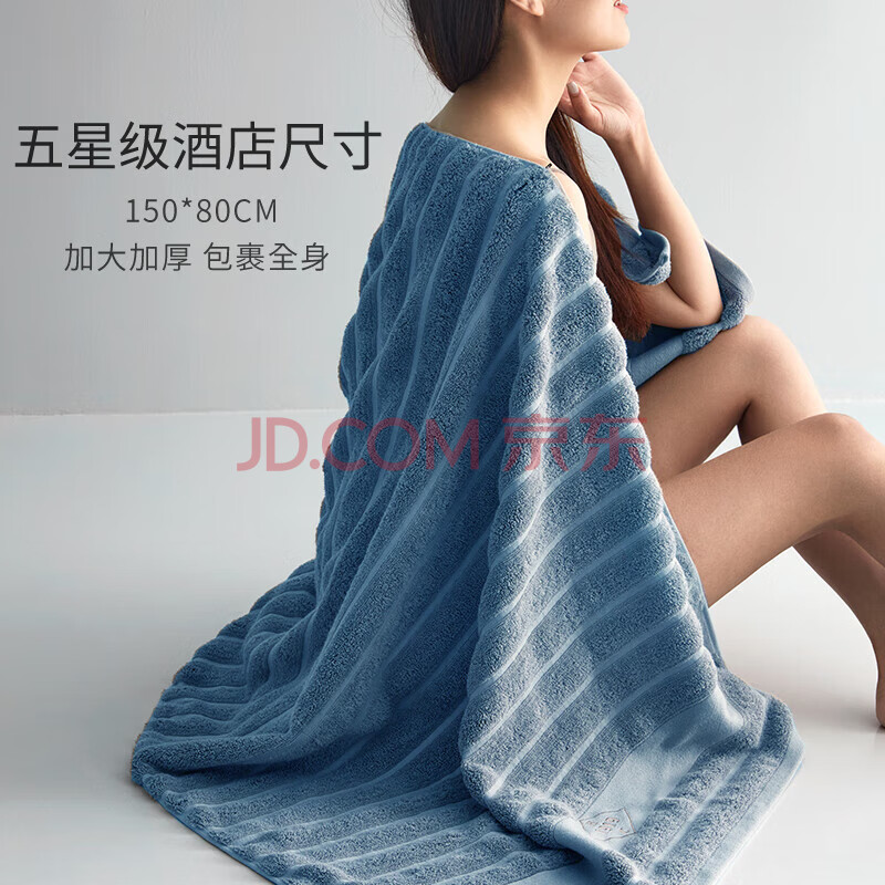 商品相册:康尔馨希尔顿浴巾 五星酒店大毛巾 男女洗澡巾 纯棉吸水 沐兰色150*80cm第