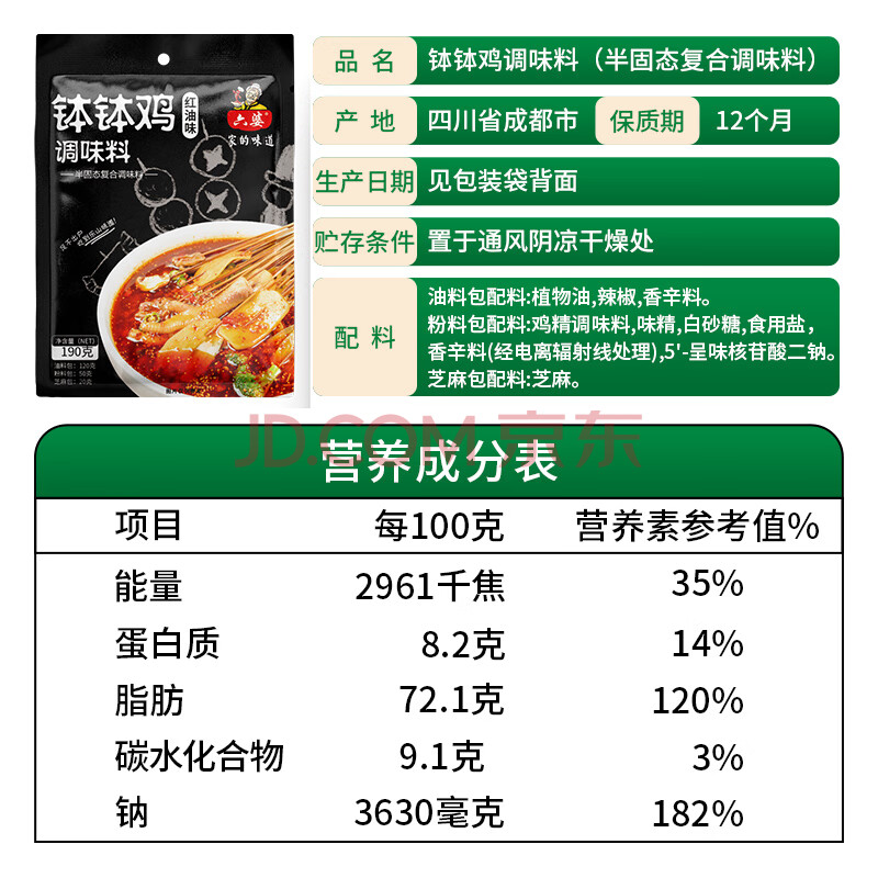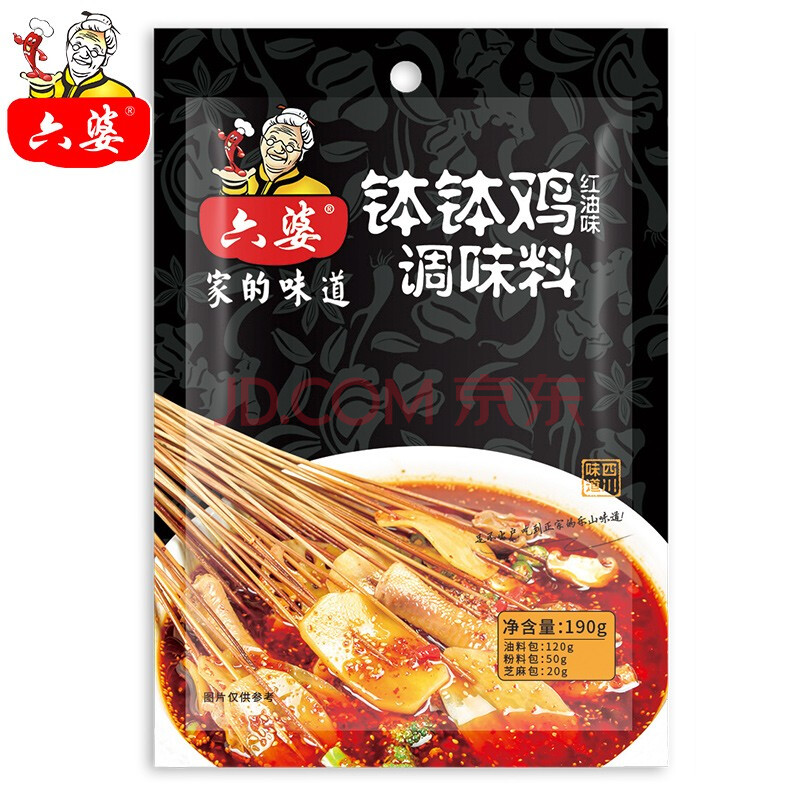 商品相册:六婆钵钵鸡调料红油味190g袋装 麻辣商用麻辣烫冷锅串串口水鸡凉拌菜第