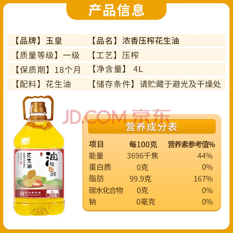 商品相册:玉皇【保真花生油】 古法特香花生油 4L 当季新花生 中华老字号第