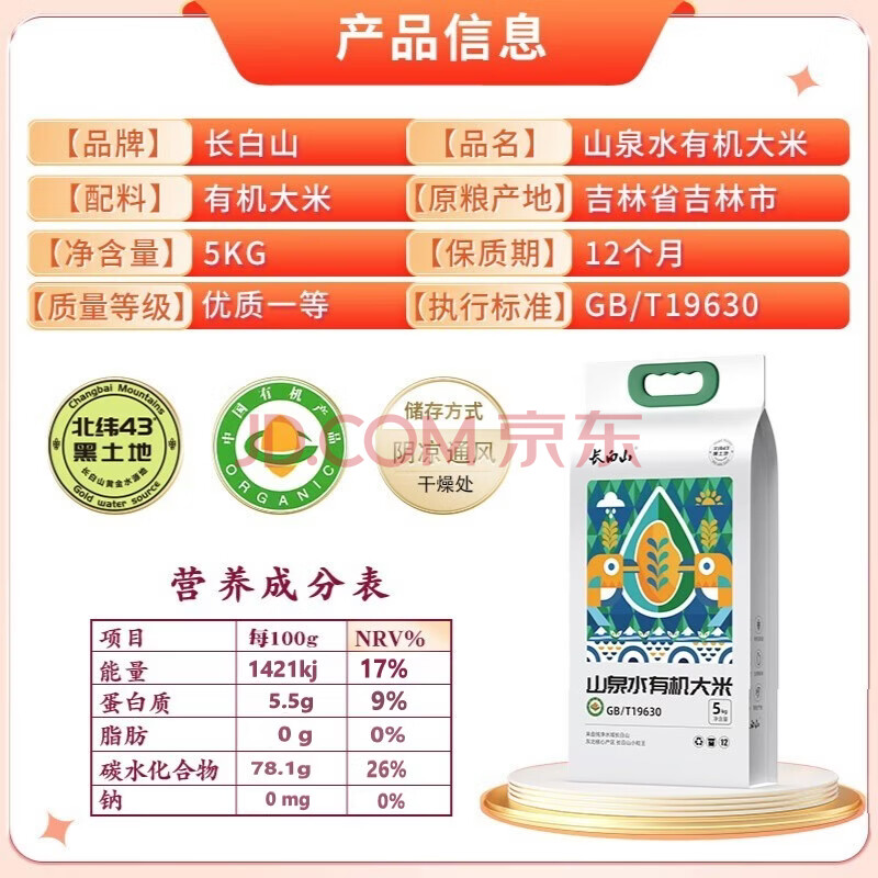 商品相册:长白山有机大米 山泉水 东北大米 真空包装10斤 当季新米上市第