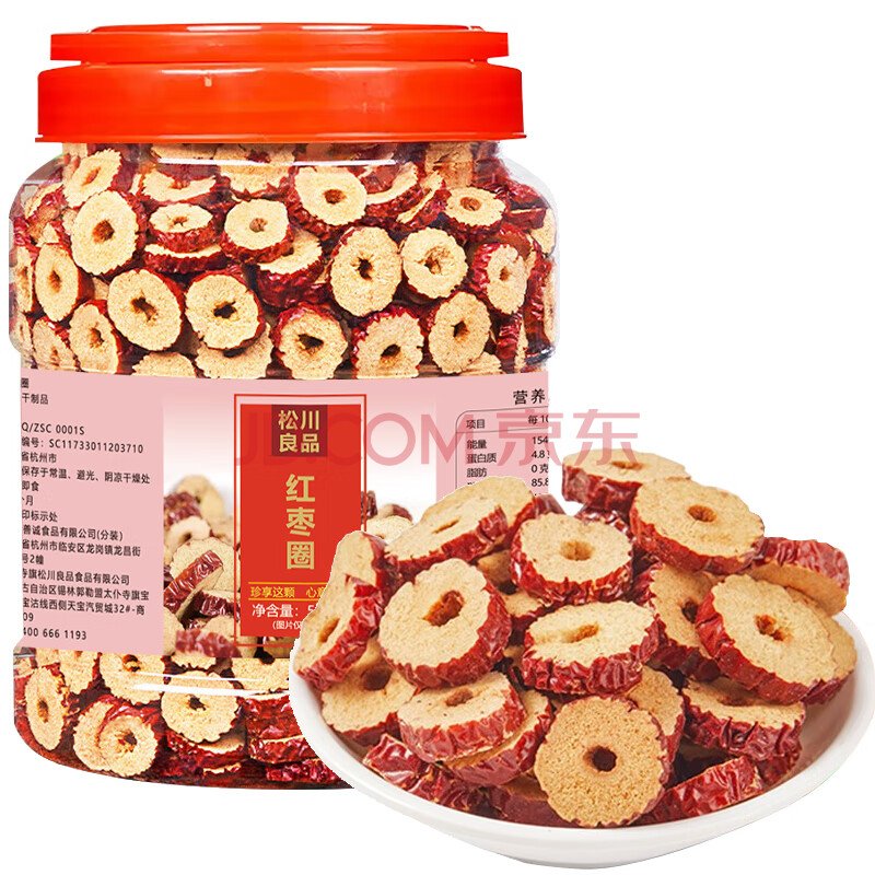 商品相册:松川良品 红枣圈蜜饯果干无核新疆红枣片干若香脆 泡茶水枸杞食品1斤罐装第
