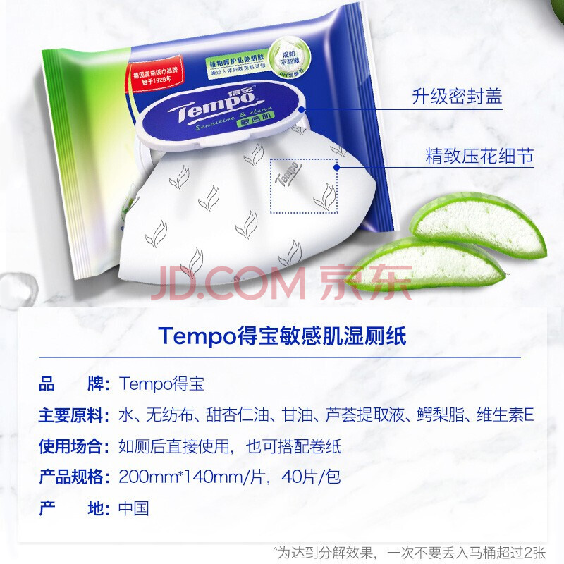 商品相册:得宝芦荟湿厕纸 40片便携装私处洁阴湿厕纸巾成人卫生洁肤湿纸巾*10包第