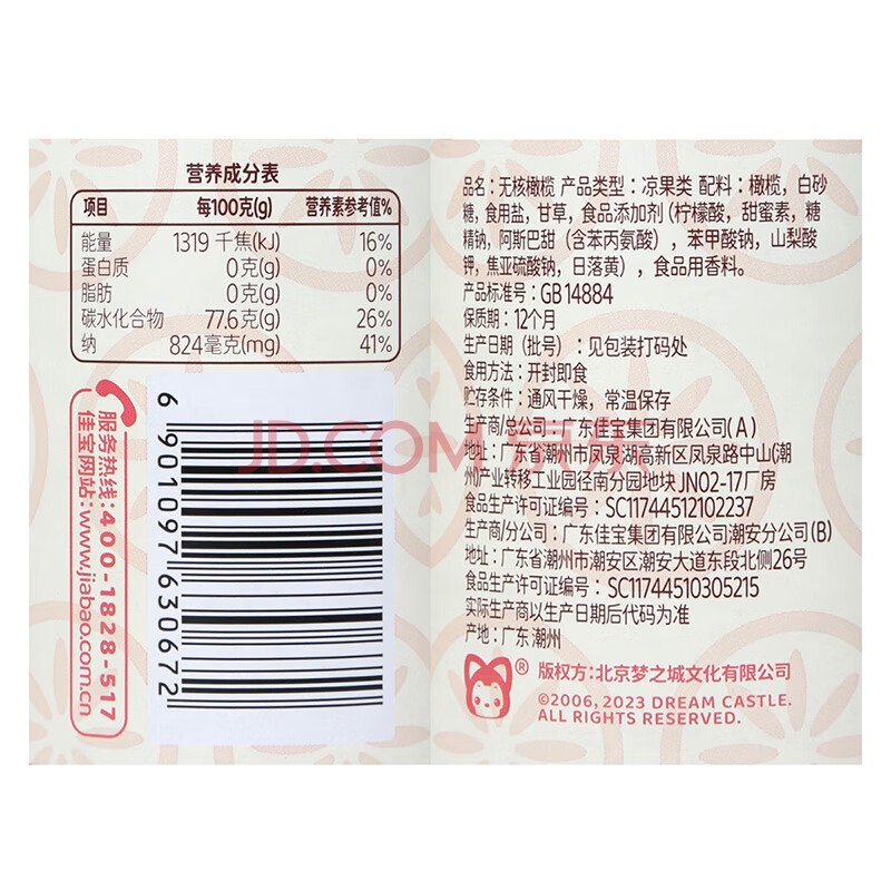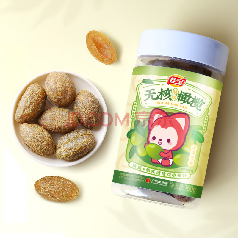 商品相册:佳宝无核橄榄大罐新鲜水果干160g原果味旅游常备零食第