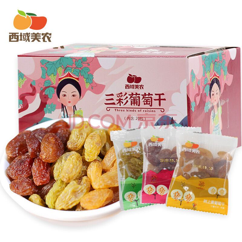 商品相册:西域美农免洗三色葡萄干225g 无核大颗粒独立小袋装 新疆特产蜜饯果干第