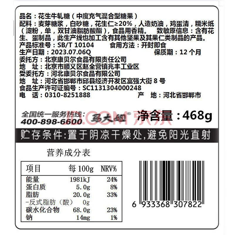 商品相册:马大姐 老北京牛轧糖 468g/袋 手工花生牛奶糖 休闲零食 婚庆喜糖第
