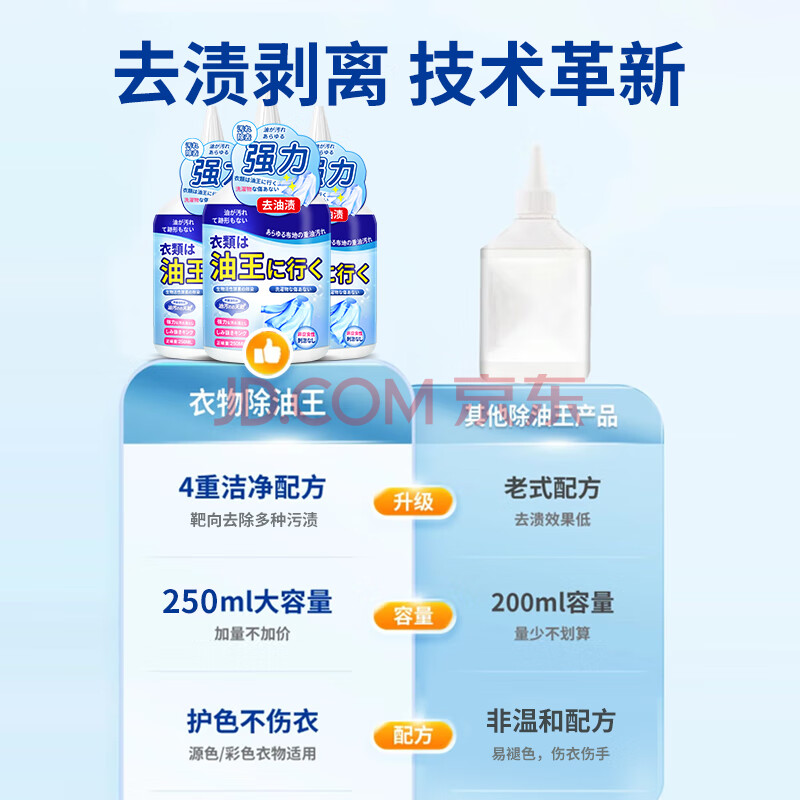 商品相册:小林康夫去油污渍神器衣服去油王250ml衣领净衣物渗透清洗剂校服净清洁剂第