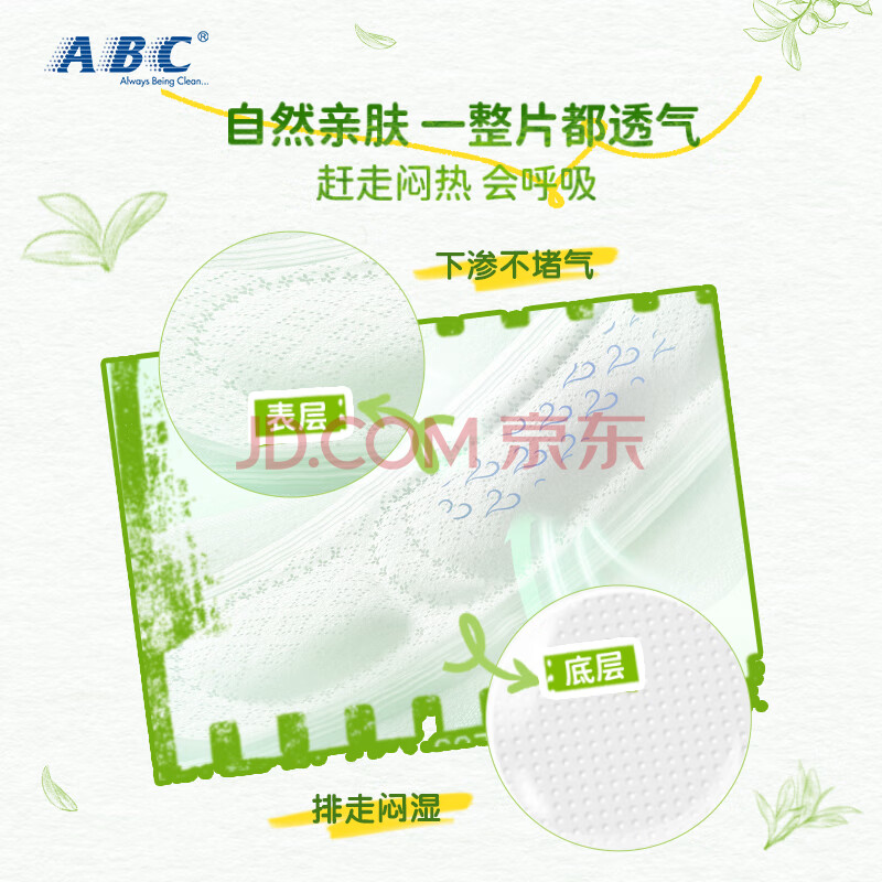 商品相册:ABC澳洲茶树精华超薄透气日夜卫生巾套装京东自营姨妈巾6包65片第