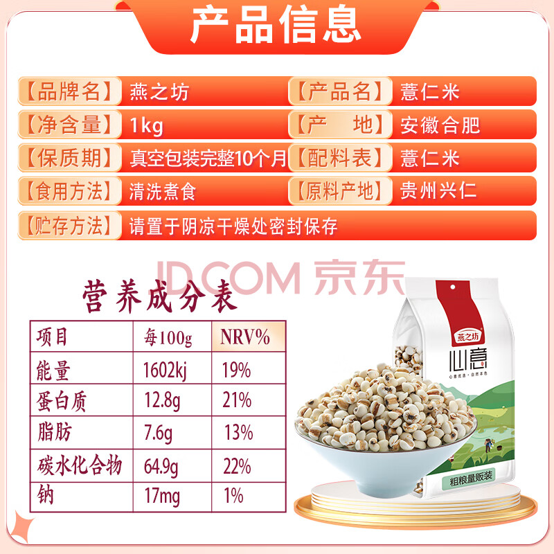 商品相册:燕之坊 薏仁米 2斤(薏米仁薏米五谷杂粮粗粮真空装大米粥米伴侣)第