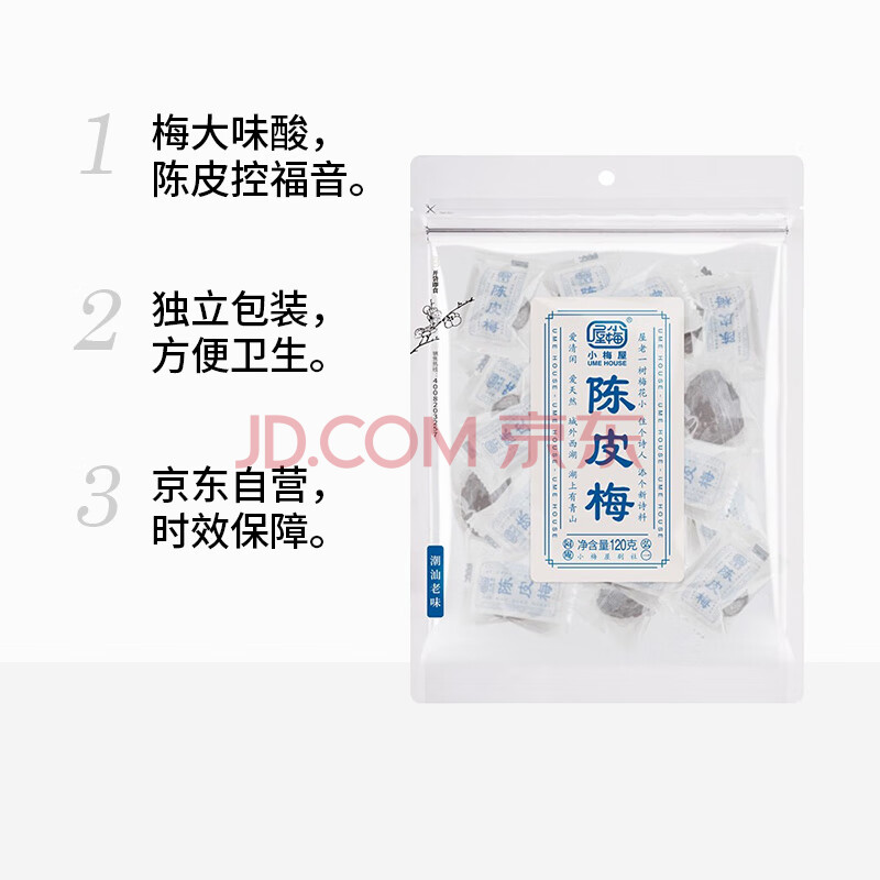 商品相册:小梅屋 话梅干李子干办公室休闲零食酸甜解馋 陈皮梅120g/袋第