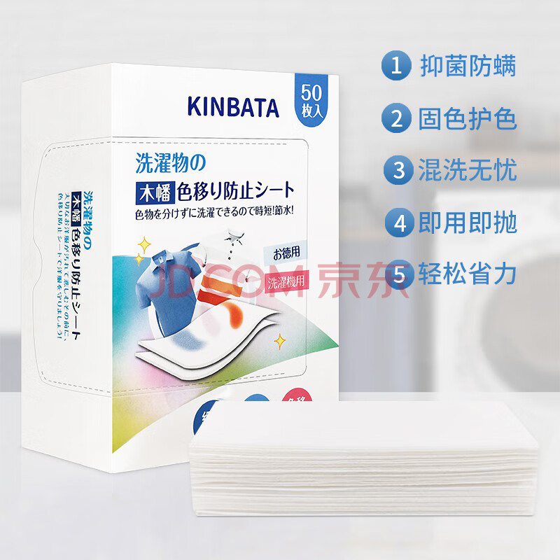 商品相册:KINBATA日本防串色洗衣片50片吸色片防染色洗衣片抑菌防螨色母片第