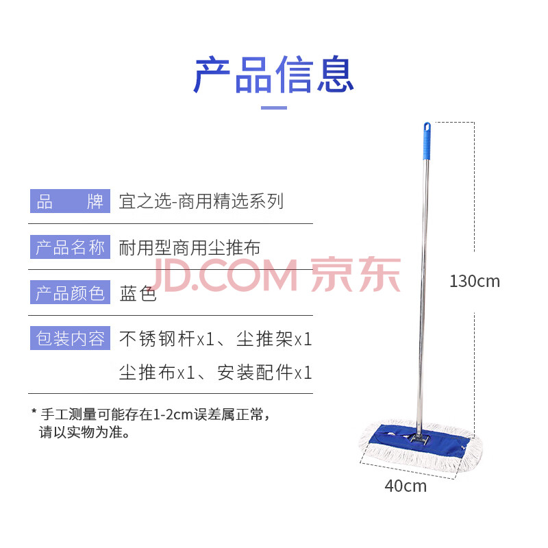 商品相册:宜之选平板拖把40CM一体杆1布商用大号尘推木地板保洁墩布棉纱拖加固版第