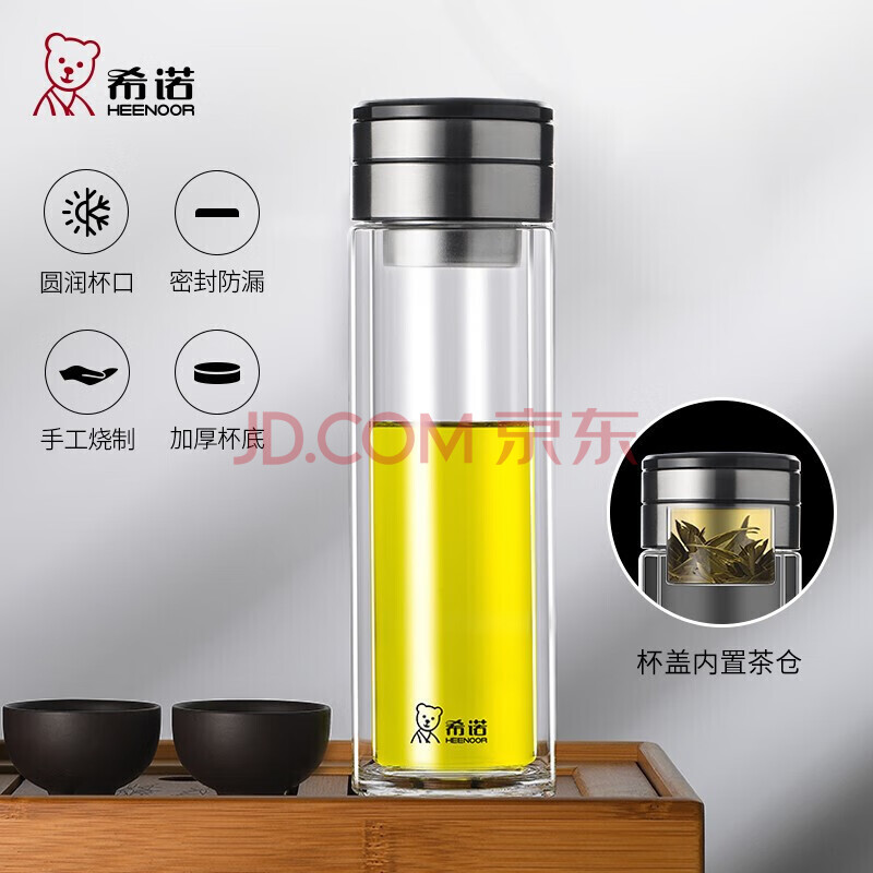 商品相册:希诺(HEENOOR)双层茶水分离玻璃杯男女士大容量杯子隔热茶杯高档商务水杯XN-7095本色 320ml第